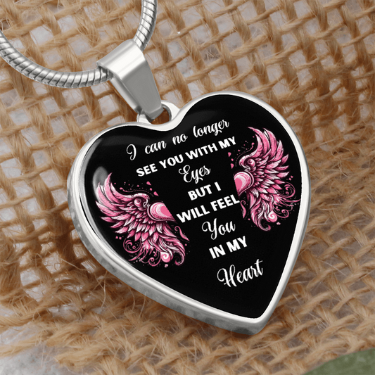 I Can No Longer See You But Feel You in My Heart – Memorial Heart Necklace – Sympathy Gift for Loss – In Loving Memory Jewelry – Grief Remembrance Gift