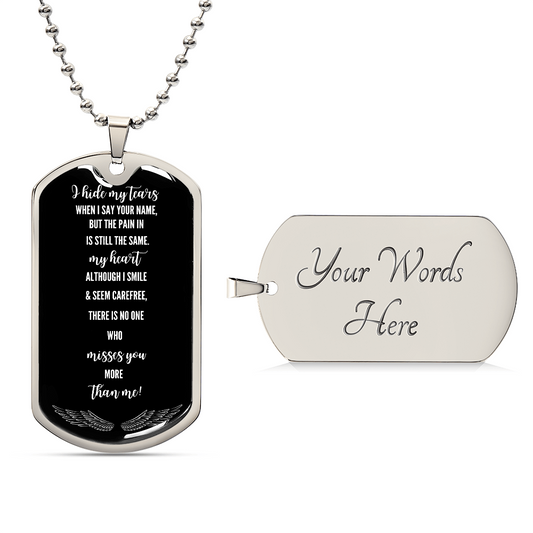 I Hide My Tears When I Say Your Name – Memorial Military Chain Tag Necklace – Sympathy Gift for Loss – In Loving Memory Jewelry – Grief and Remembrance Necklace