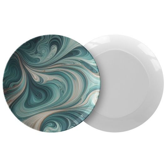 Dinner Plate Set Turquoise Waves and Gold Marble Look – Marble Look Dishes, Thermosafe Dinnerware