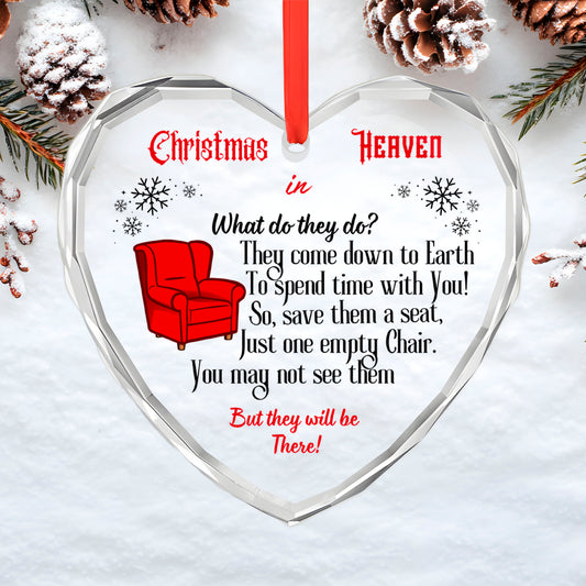 Personalized Christmas in Heaven Glass Heart Ornament – Memorial Gift for Mom, Dad, Grandparents