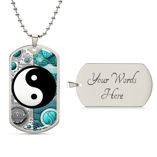 Turquoise Yin Yang Military Tag Necklace Spiritual Balance Pendant for Men Zen Style Jewelry Mindfulness Gift for Him Unique