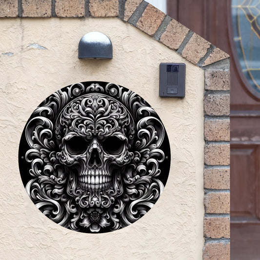 Wreath Sign, Halloween Wreath Sign, Skull Wreath Sign, Halloween Scene Metal Sign, Signs for Wreaths, Shelf Sitter, 3D Look Sign
