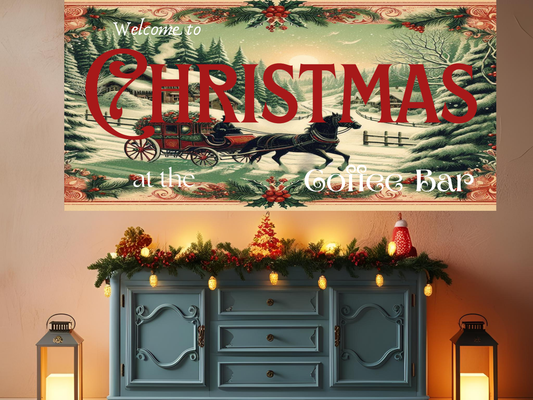 Welcome Christmas Coffee Bar Wall Art Sign – Festive Home Décor Canvas Print