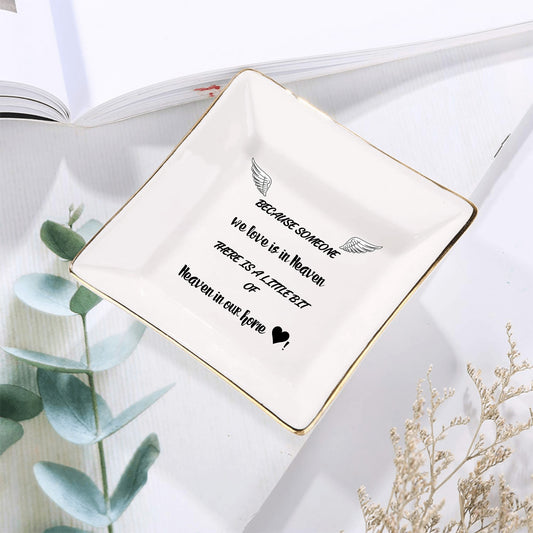 Personalized Memorial Ceramic Square Plate – “Because Someone We Love Is in Heaven” Tribute Decor