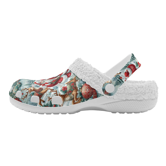 White Winter Fur-Lined Clogs for Adults – Santa Claus Christmas Design
