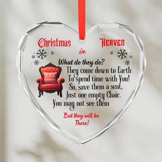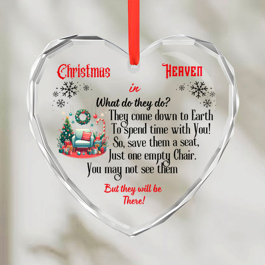 Personalized “Christmas in Heaven” Glass Heart Ornament – Memorial Keepsake for Loved Ones