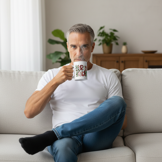 Christmas Movie Watching Mug – White Glossy Ceramic Holiday Gift Cup