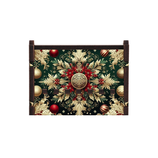 Baroque-Inspired Festive Music Box - Handcrafted Wooden Personalized Gift with Holly & Ornament Design for Christmas
