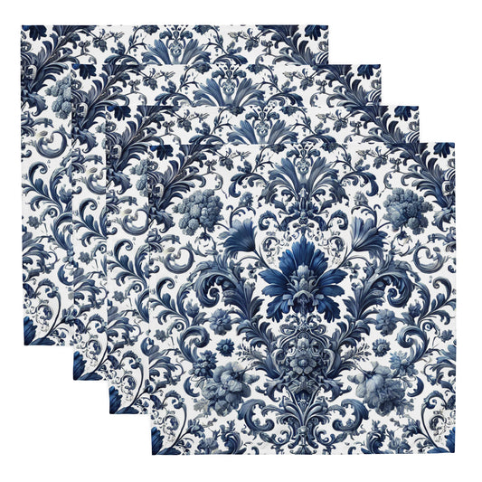 Blue Damask Cloth Napkins Set – Elegant Reusable Dinner Linens (Set of 4)