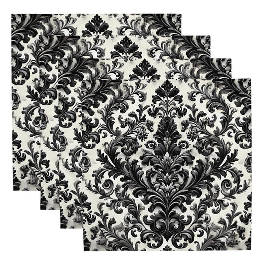 Black and White Damask Cloth Napkins – Elegant Reusable Fabric Dining Set (Set of 4)