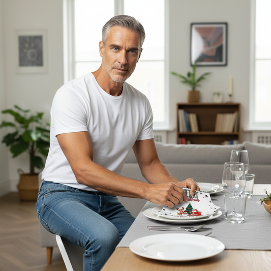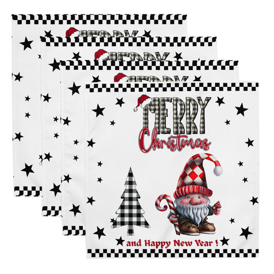 Merry Christmas Cloth Napkin Set with Gnome Design | Black, White & Red Holiday Table Decor