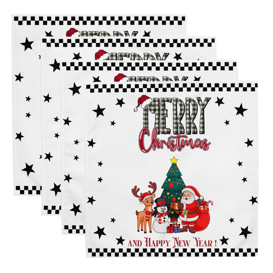 Merry Christmas Characters Cloth Napkin Set – 4-Piece Holiday Table Decor