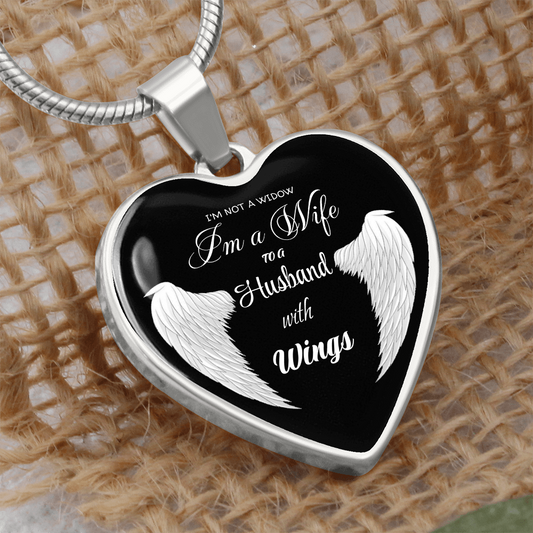 I'm not a Widow I'm a Wife to a Husband with Wings Luxury Graphic Heart Necklace