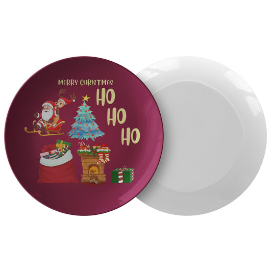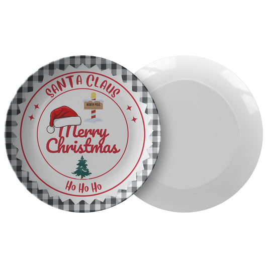 Festive Black & White Plate with Vibrant Red "Ho Ho Ho" Santa Claus Design – Perfect for Holiday Gatherings