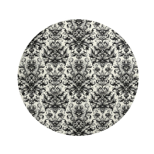 Custom Baroque Revival Round Flannel Door Mat - Personalized Black & White Damask Pattern - Non-Slip Entryway Rug for Housewarming Gift (80X80cm/100X100cm)