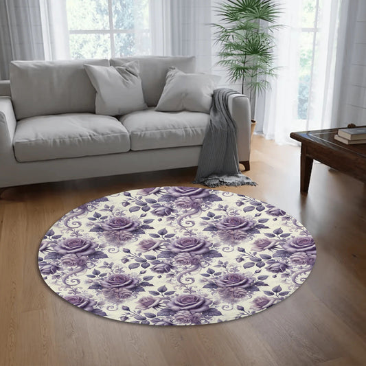Victorian Floral Custom Doormat or Rug- Personalized Round Welcome Mat with Purple Roses, Non-Slip Backing, 2 Sizes (80x80cm/100x100cm) - Perfect Housewarming Gift