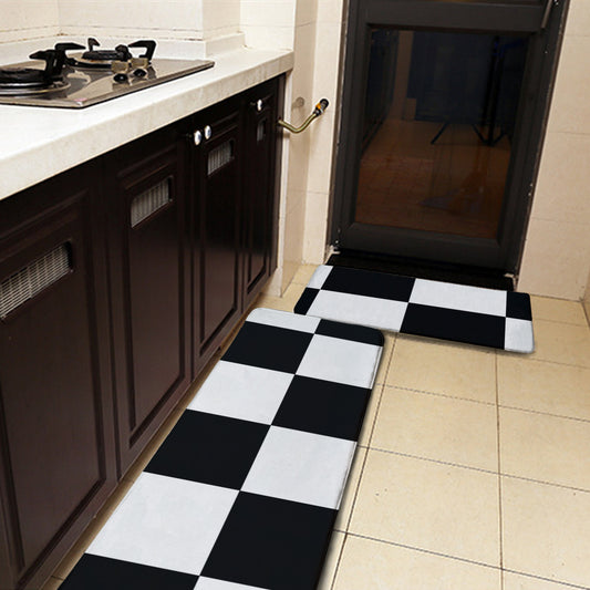 Black and White Checkered Kitchen Mat – Non-Slip Flannel Floor Rug for Modern Home & Kitchen Decor