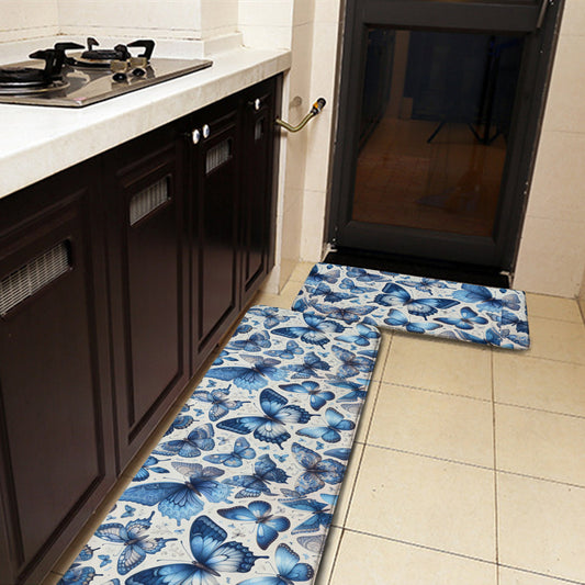 Blue Butterflies Kitchen Mat – Non-Slip Flannel Rug for Home Entryway or Bathroom Decor