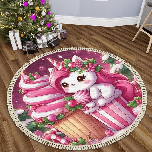 Pink Unicorn Christmas Area Rug with Tassels (8:5)