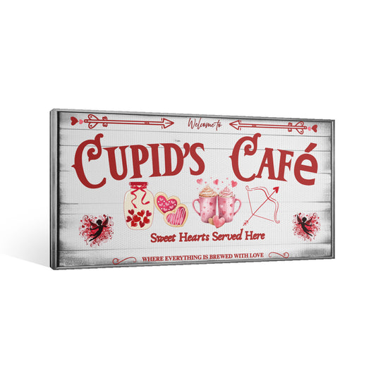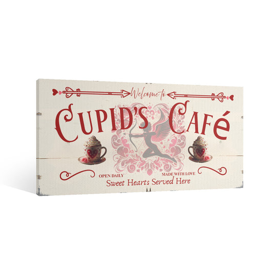 Valentine's Day Canvas Wall art Gift idea, Cupid's Cafe Sign