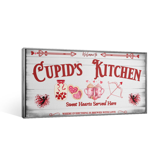 Cupid’s Kitchen Canvas Sign – Cozy & Romantic Home Decor Valentine's Day