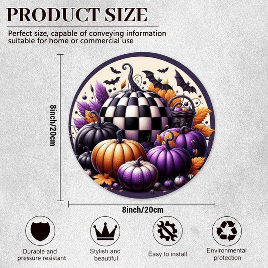 Pumpkin Round Tin Sign Wall Art– Durable Fall Decor with Safe Wrapped Edges & Easy Hanging