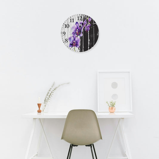 Frameless Round Wall Clock – Violet Orchidea Design for Kitchen, Bedroom & Living Room
