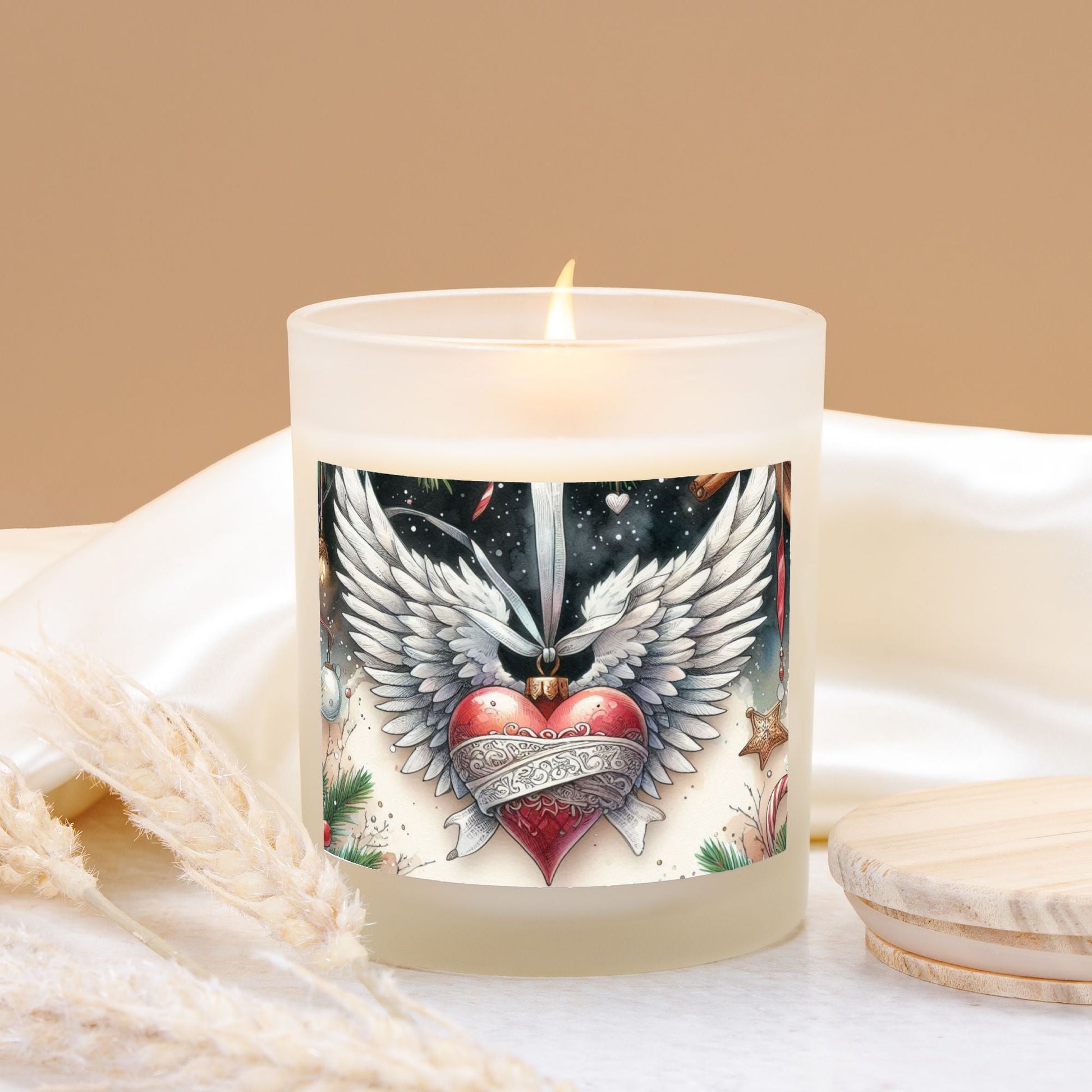 Angel Wings Christmas Candle Frosted Glass (Hand Poured 11 oz)