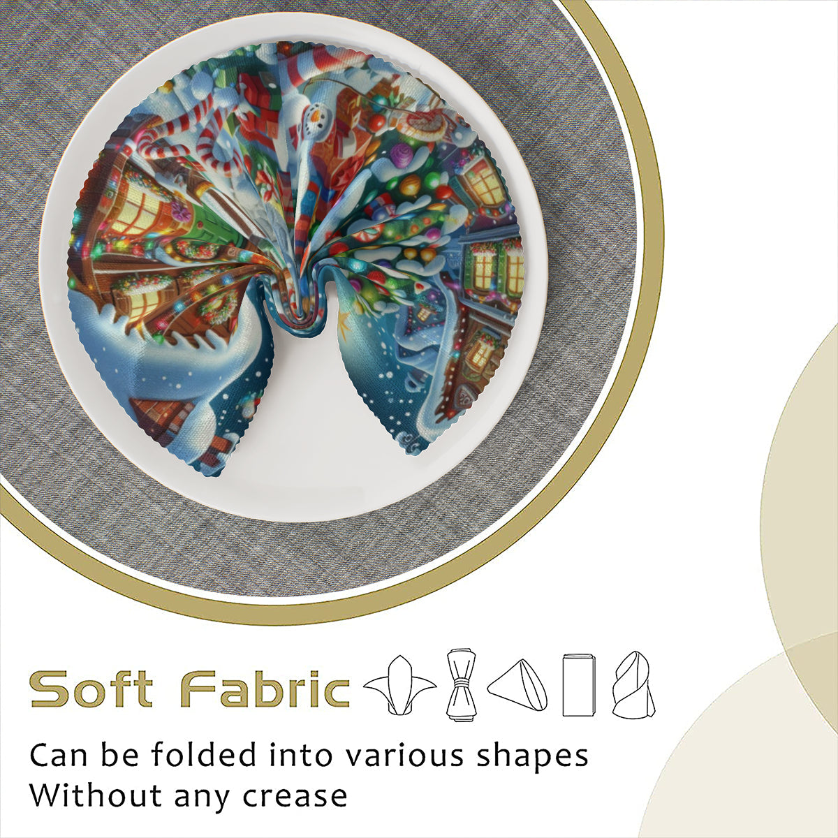 Elevate your holiday dining experience with our exquisite Christmas Napkins, designed to bring a touch of elegance and festive charm to your table setting. Crafted from premium polyester fabric, these napkins boast a durable, stretchable material that promises resilience against fading or tearing. Each piece is meticulously hemmed and features finely stitched edges, ensuring not only longevity but also a sophisticated appearance.