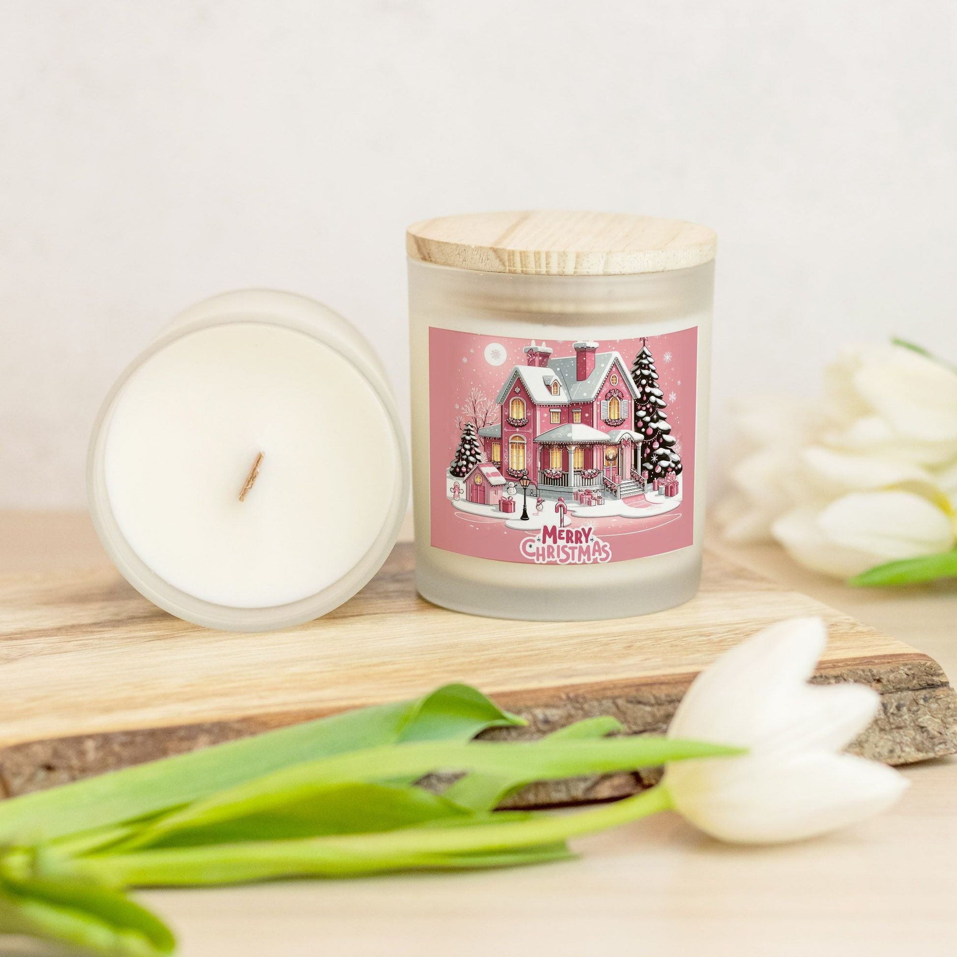 Merry Christmas Candle Frosted Glass Holder, Holiday Candle Decor, Christmas Table Centerpiece, Festive Home Decoration